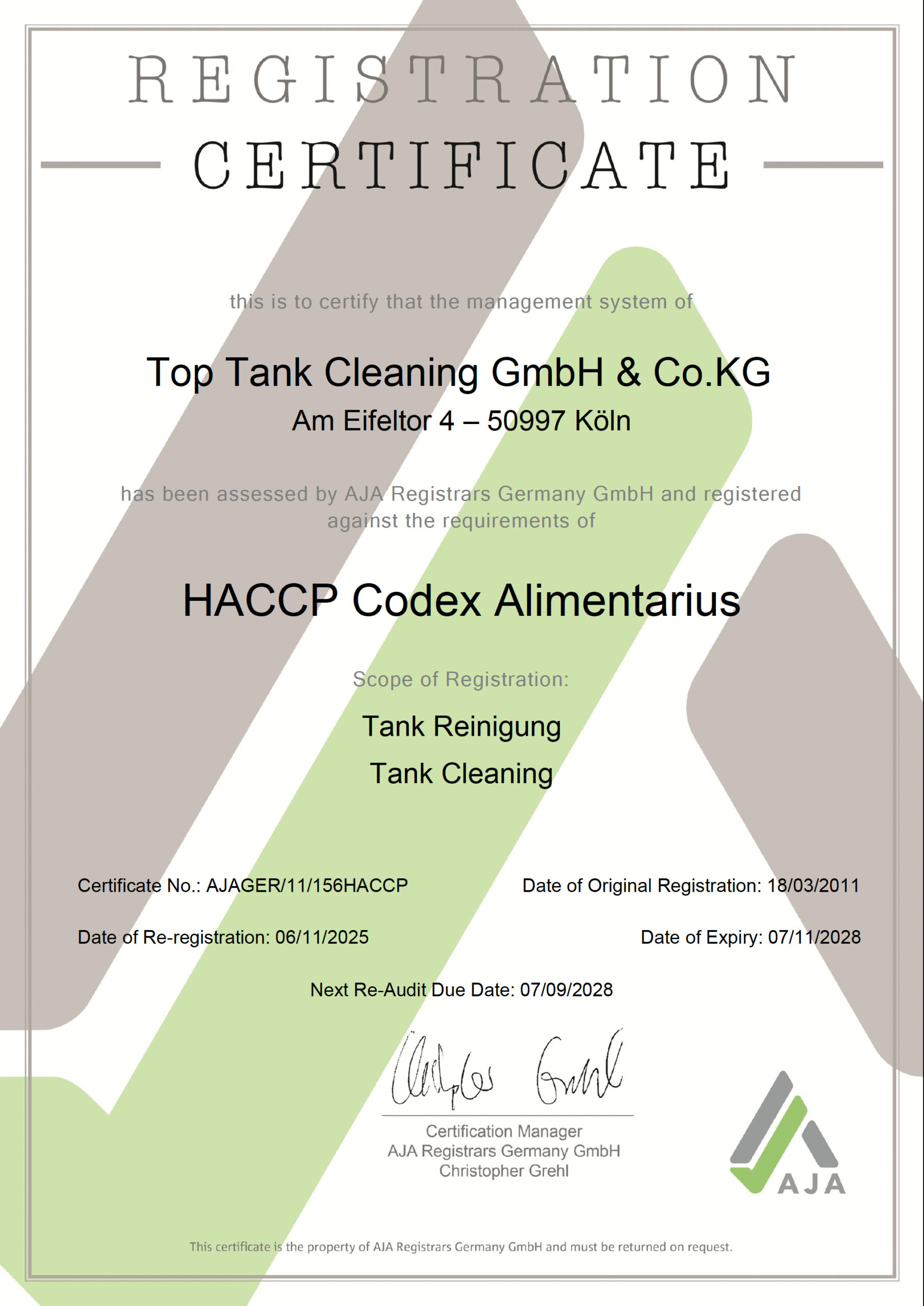 Die HACCP-Zertifizierung ist ein vorbeugendes System zur Sicherheit von Lebensmitteln und Verbrauchern. Unser Zertifizierung wurde im November 2019 nach den Richtlinien des HACCP Codex Alimentarius erneut bescheinigt.
